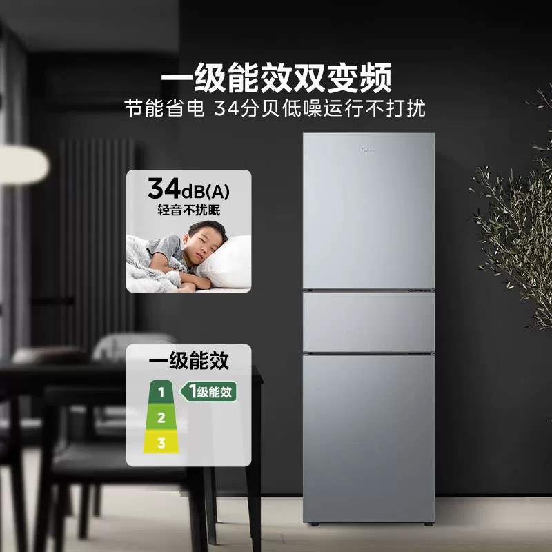 美的251一级变频超薄风冷无霜出租房家用新品小户型三开门电冰箱